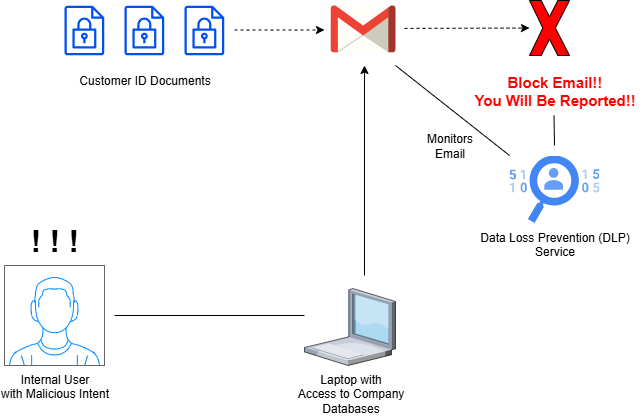 DLP is a software security control that every organization of any size should implement. DLP works in the background while company users perform their daily workflows. A set of rules are in place for DLP to act on. These rules specify categories of data that should not ever leave the organization’s infrastructure. If DLP detects a user trying to send out any sensitive data, it logs and blocks the activity.