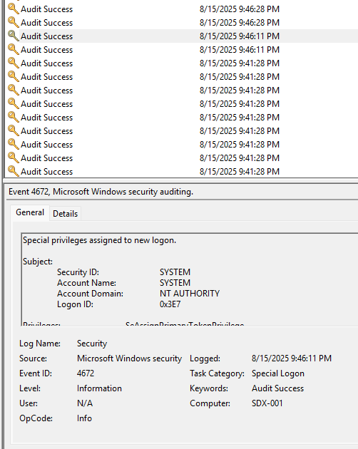 Within each category, you can sift through the associated logs and use the General/Details pane at the bottom to analyze each event.