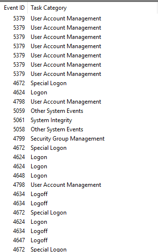 You can follow along with either the Event IDs or the Task Category descriptions as you sift through the many entries.