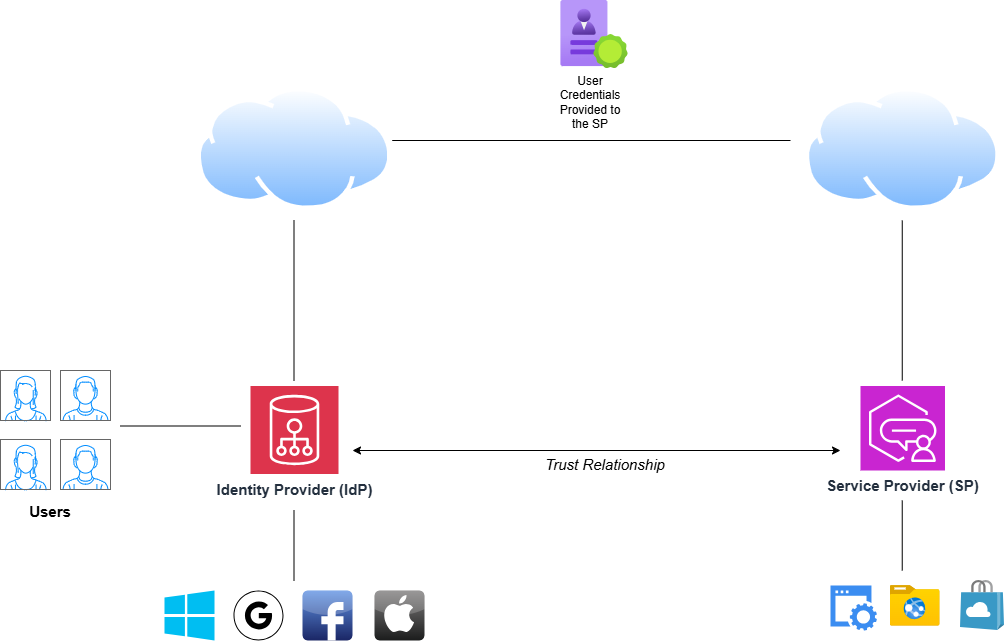 The website or app that a company user wants to access is the Service Provider (SP). The name is pretty straightforward; it is the exterior organization that is hosting the service that users in your organization want to access. For federation to work, the SP needs to trust your organization on your IdP.