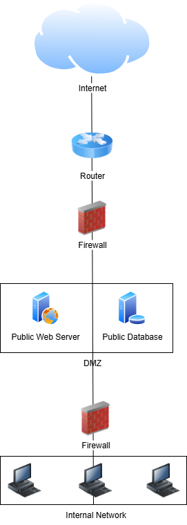 Another method of segmentation is essential for any business that looks to host publicly accessible servers on their network. A Demilitarized Zone (DMZ) is a network segment that sits between the public Internet and your internal network. This segment has public IP connections and its own nuanced security rules. It allows ports to be opened to the Internet so public users can see and interact with your public services running on machines in the DMZ.