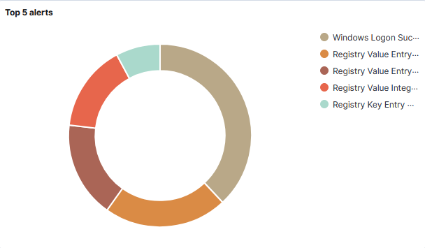 Under Threat Hunting, I am provided with graphics that give insights into some of the activity on my laptop. The Top 5 alerts graphic shows that my most common activity is logging into the laptop.
