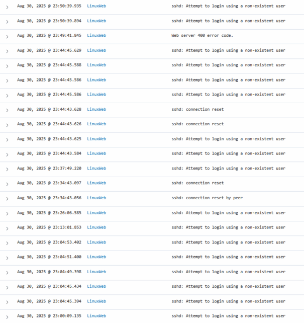 I have a Wazuh instance spun up for a web server I host. Let's take a look at some of the data provided by my SIEM.