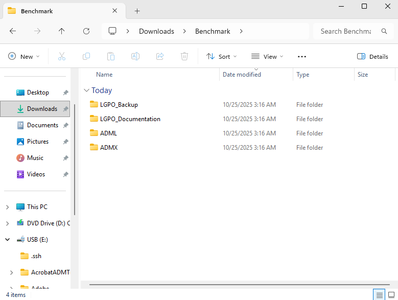 3. Next, navigate out of the Benchmark ADMX subfolder and into the ADML subfolder. Copy all of the .adml files from the subfolder into the en-US subfolder in PolicyDefinitions.