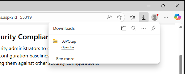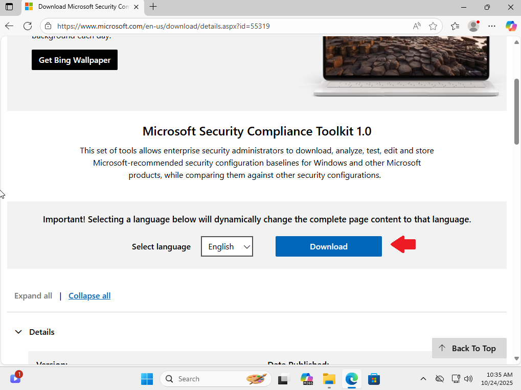 4. Visit the Microsoft Security Compliance Toolkit website and select the Download button.