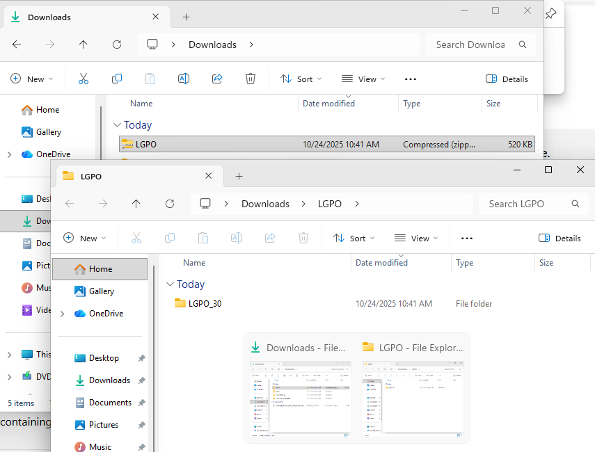 9. Navigate to the Windows directory where you extracted the LGPO folder.