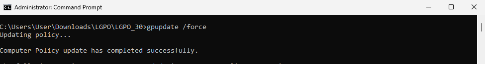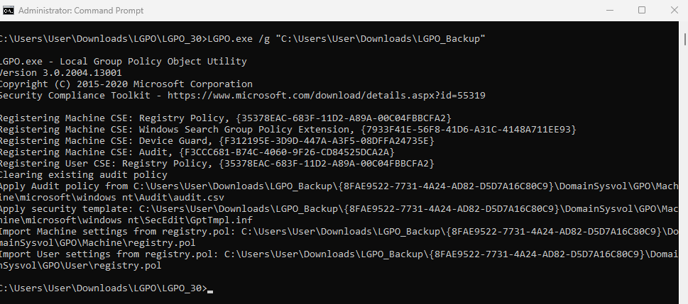 If all goes well you should start seeing lines of text indiciating that the LGPO settings are being imported.